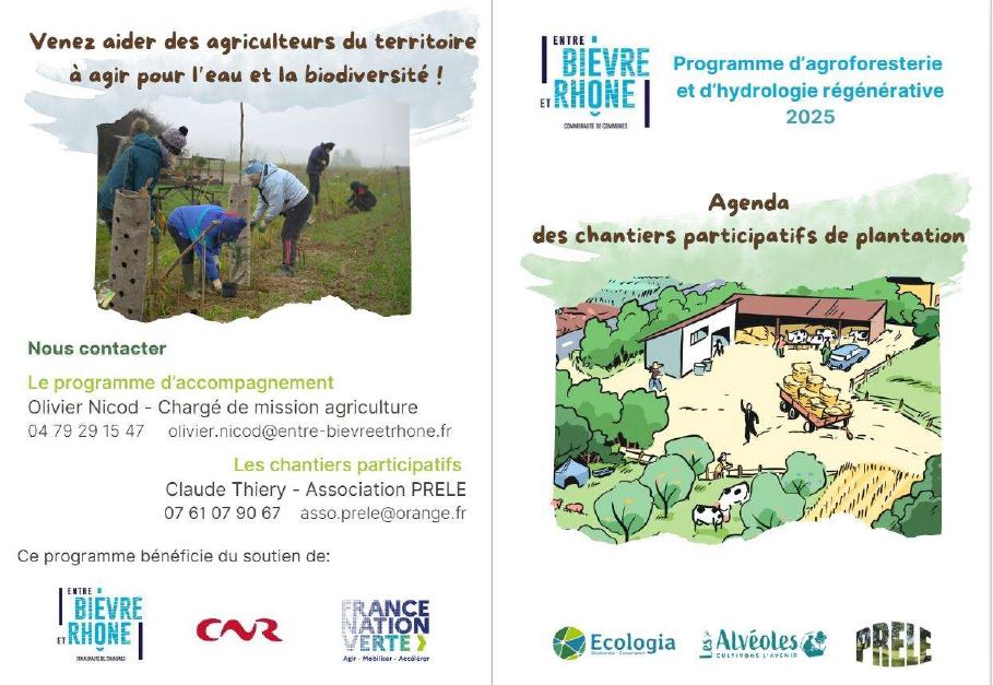 La Communauté de communes Entre Bièvre et Rhone s'est engagée dans une expérimentation sur l'hydrologie générative dans 5 exploitations agricoles du territoire (2024-2025). Après la phase d'étude, de dessin, d'échanges avec les exploitants, c'est la phase travaux qui commence.